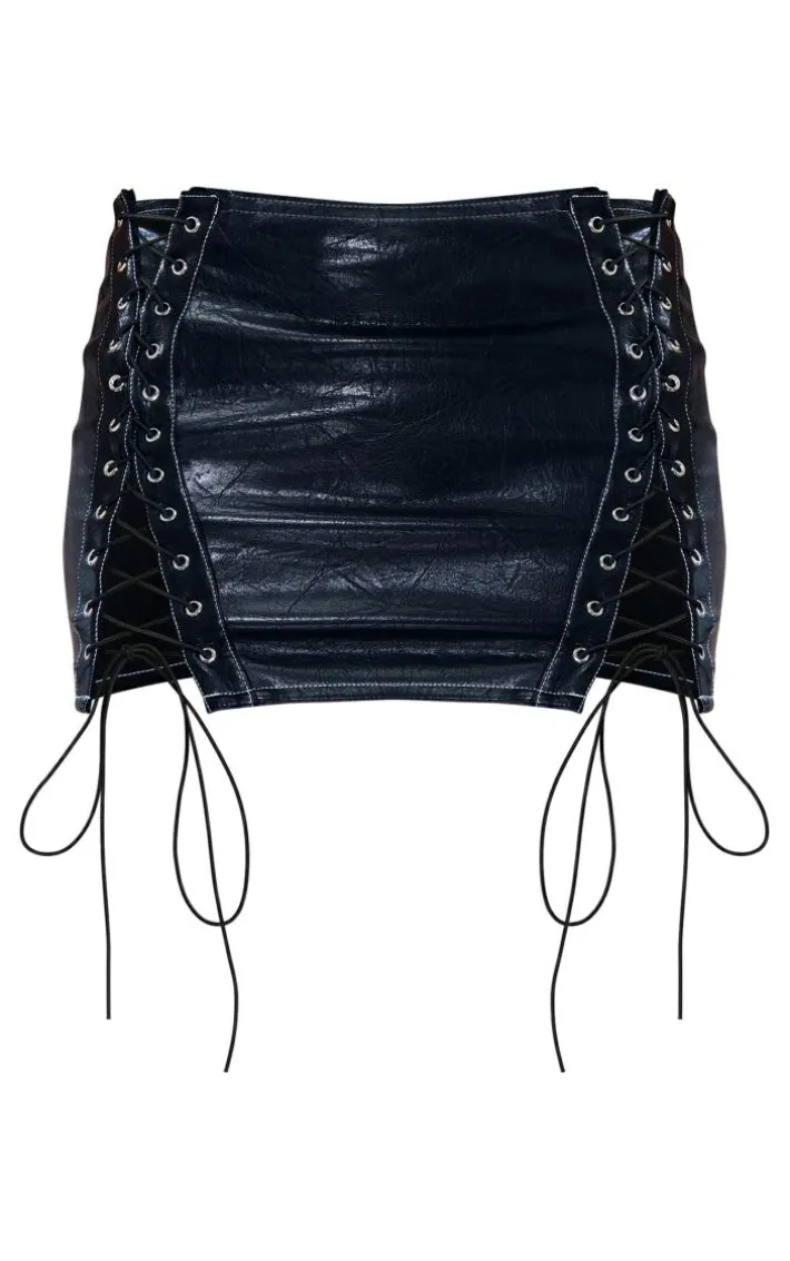 Get ready to add some attitude to your weekend look with this black PU contrast stitch detail lace up micro mini skirt. Brought to you in a black PU material with a contrasting stitch design, lace up detailing and a micro mini fit, how can you resist? We are loving this micro mini skirt styled with the matching corset, heels and gold accessories for a fierce weekend-worthy ‘fit that is sure to be the topic of everyone’s conversation.