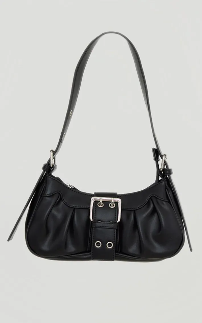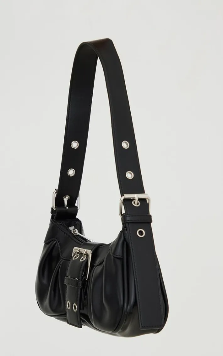 Add a little edge to your outfit of the day with this bag. Featuring a black material with a buckle detail and a zip fastening, what’s not to love? Just add to your fave new season fit for an instant chic finish.
