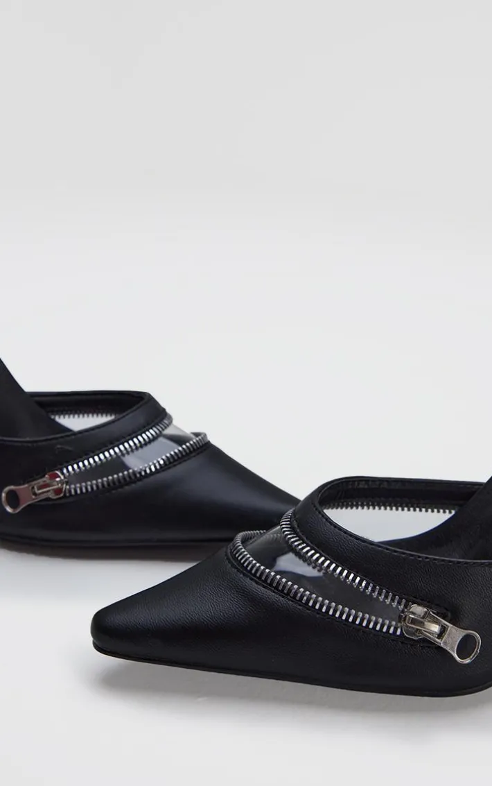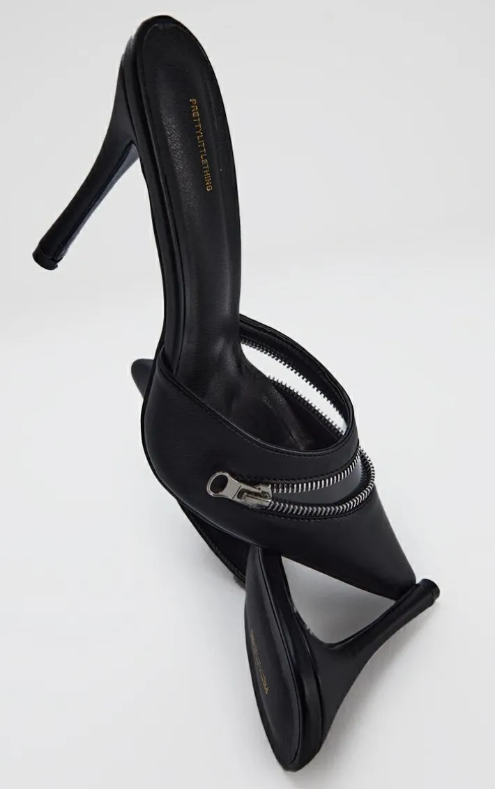 These heels are perfect for the new season glam. Featuring a black PU material with a point toe, zip detail, vinyl contrast design and a stiletto heel, what more could you ask for?