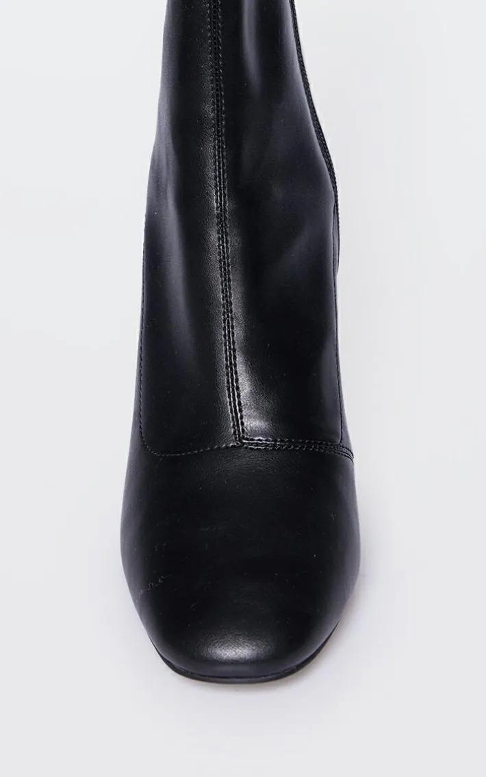 Your new season wardrobe wouldn’t be complete without these black PU round toe heeled ankle sock boots, you’re sure to be nailing major trends. With a black PU material, a round toe design and a block heel, you’ll be reaching for these sock boots again and again. Team it with your fave outfit of the day to take your look the extra mile.