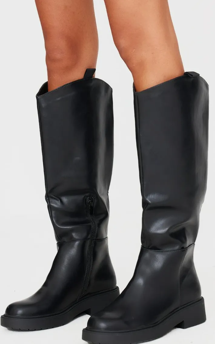 Elevate your A/W look with these black PU round toe knee high flat boots. Brought to you in a black PU material with a round toe design, these knee high flat boots are all the new you need. What are you waiting for? Style with a chic outfit of the day and simple accessories for a look like no other.