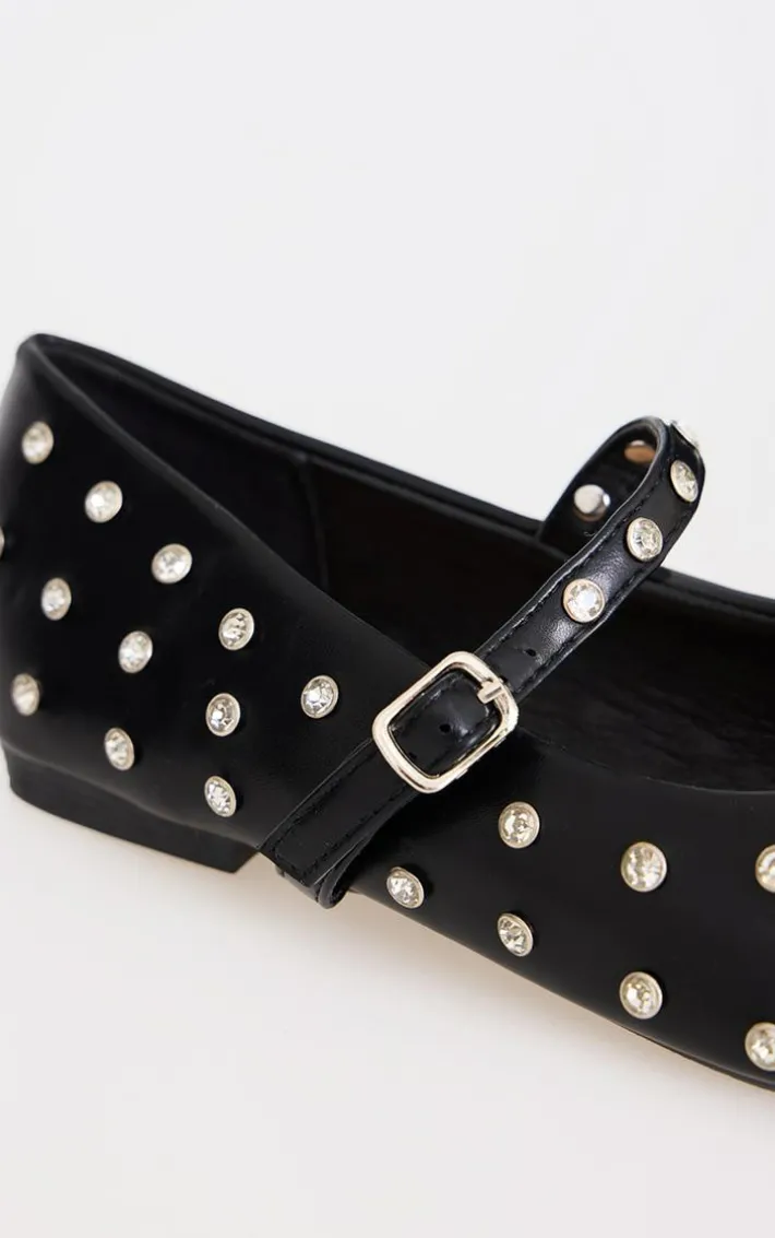 Elevate your everyday look with these black PU round toe studded ballet flats. Brought to you in a black hue PU material with a round toe design and studded detail, these ballet flats are all the new you need. Team with a chic outfit of the day for a luxe finish.