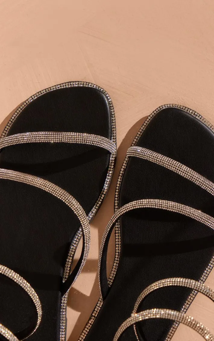 Add a subtle touch of glam to your outfit of the day with these black PU square toe diamante spiral strap flat sandals. Brought to you in a black PU material with a square toe design, spiral straps and luxe diamante detailing, how can you resist? Style these flat sandals with any look for the perfect finish.