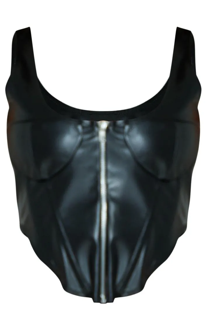 Take your look to a whole new dimension with this black PU under bust detail zip up front boned corset. This corset is brought to you in a black PU material with under bust detailing, a zip up front and boned detailing, what’s not to love about this? This corset is perfect paired with the matching bottoms, high heels and your statement accessories for a look that we can’t stop crushing on.