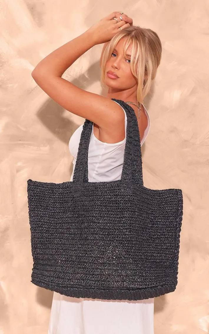 Make this black raffia large beach tote bag your new go-to accessory for vacay styling. Brought to you in a black hue raffia material with a large tote design, what more could you want? Simply add this raffia tote bag to your beach look for a statement finishing touch/
