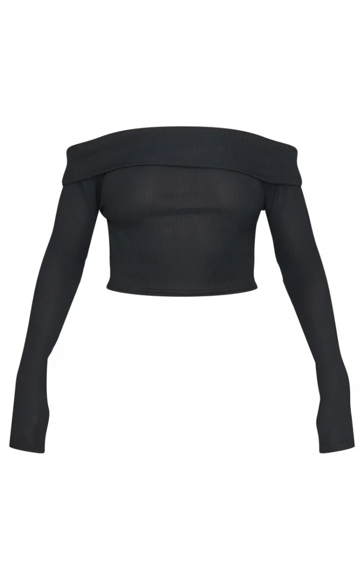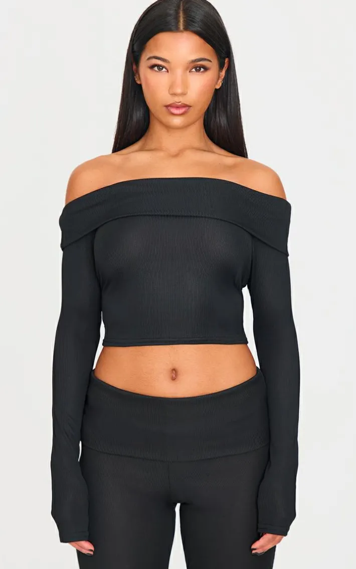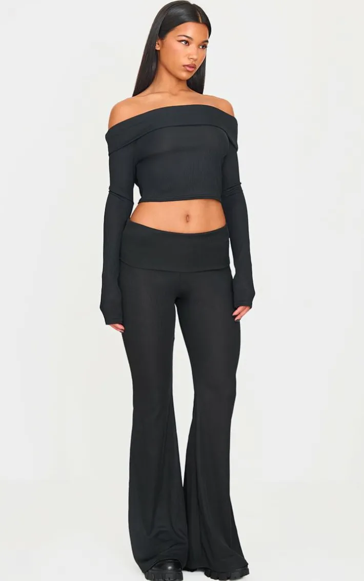 Keep your look comfy yet chic with this black rib bardot longline foldover flute sleeve top. Made from a black rib material with a bardot neckline, long flute sleeves and foldover detailing, how can you resist? Pair this black top with the matching pants, boots and simple accessories to complete the look we’re loving.