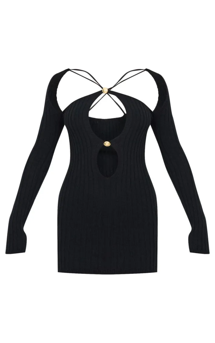 This black rib knit cross front gold trim mini dress is all you need and more for this season. Brought to you in a cosy black rib knit fabric with a chic cross front design and gold trim detailing, you’ll be entering any room feeling so confident. Work your new season styling and pair with knee high boots and matching gold jewelry.