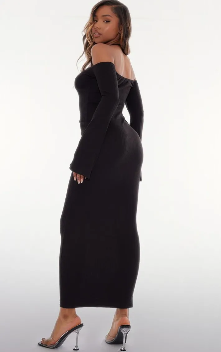 You can never have too many maxi dresses, that’s why we are seriously obsessing over this black long sleeve square neck split leg maxi dress. Brought to you in a black rib material with a long sleeve fit and a square neck design, what’s not to love? Its split leg and maxi length are perfect for those important occasions you have pencilled into your diary. Style with some clear heels and your go-to accessories.
