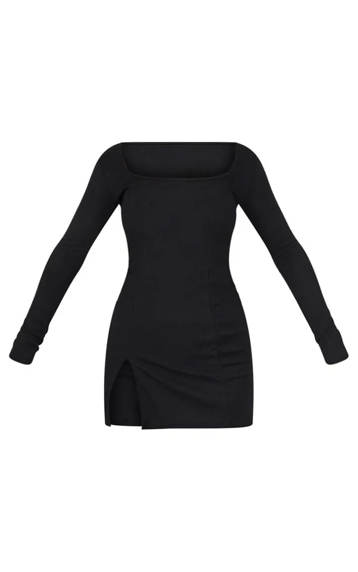 Upgrade your LBD collection with this must-have dress. Featuring a black ribbed material with a square neckline, long sleeves, and split hem detail, what’s not to love? Dress this down with chunky boots and simple accessories for an effortlessly chic look.