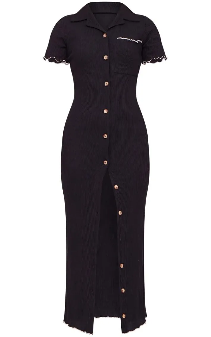 Take the stress out of weekend styling with this unreal black ribbed contrast lettuce hem maxi dress. Brought to you in a black ribbed material with a lettuce hem and a maxi length, you really can’t go wrong with this dress. Style with clear strap heels and gold accessories for a look that will have eyes on you for all the right reasons.