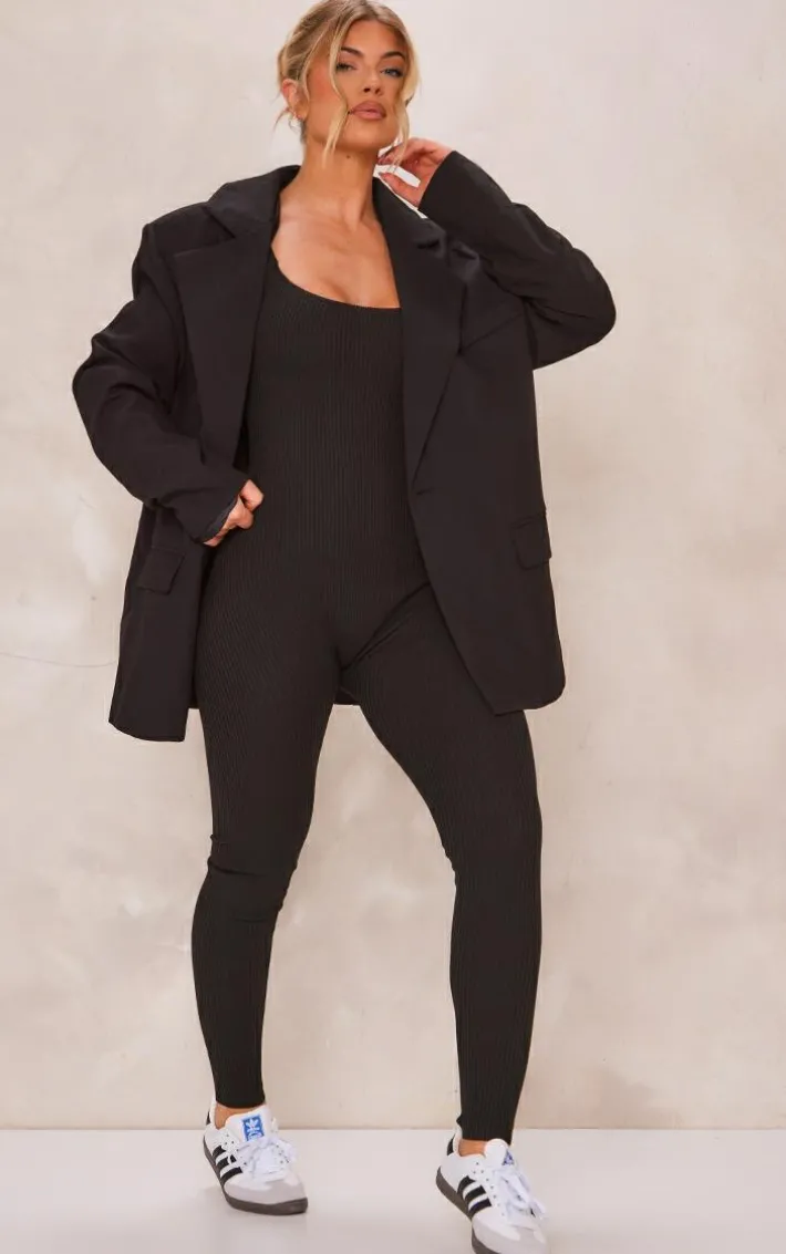 This jumpsuit is the solution to all your styling dilemmas this season. Featuring a black rib-knit material with a strappy design, we’re obsessed. Pair this with your go-to accessories for a look that will earn serious style points.