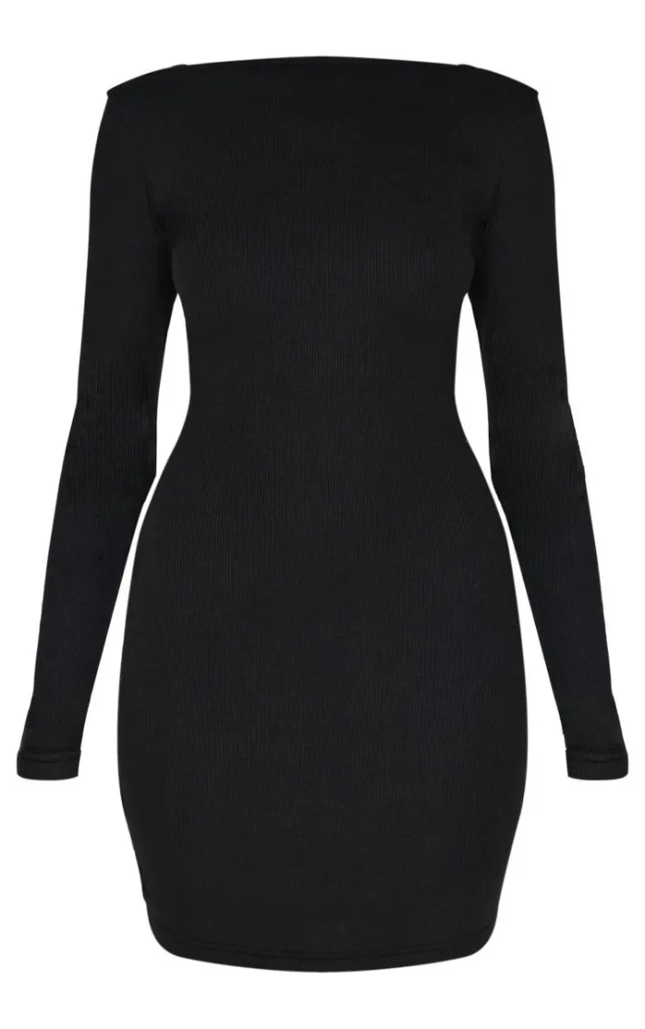 Show off your shape with this black ribbed low back long sleeve bodycon dress. Brought to you in a black ribbed material with a low back design, it’s a yes from us. This bodycon dress has a long sleeve fit that will have you feeling chic. Team with a pair of knee high heeled boots and a statement bag for a fool proof finish.