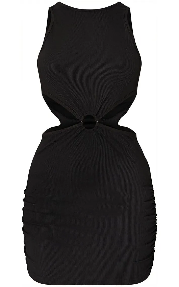 Get ready to steal all the stares in this black ribbed ring detail waist cut out sleeveless bodycon dress. Featuring a black ribbed material with ring detailing and a cut out waist design, we’re obsessed. Team with heeled mules and simple accessories for a date.