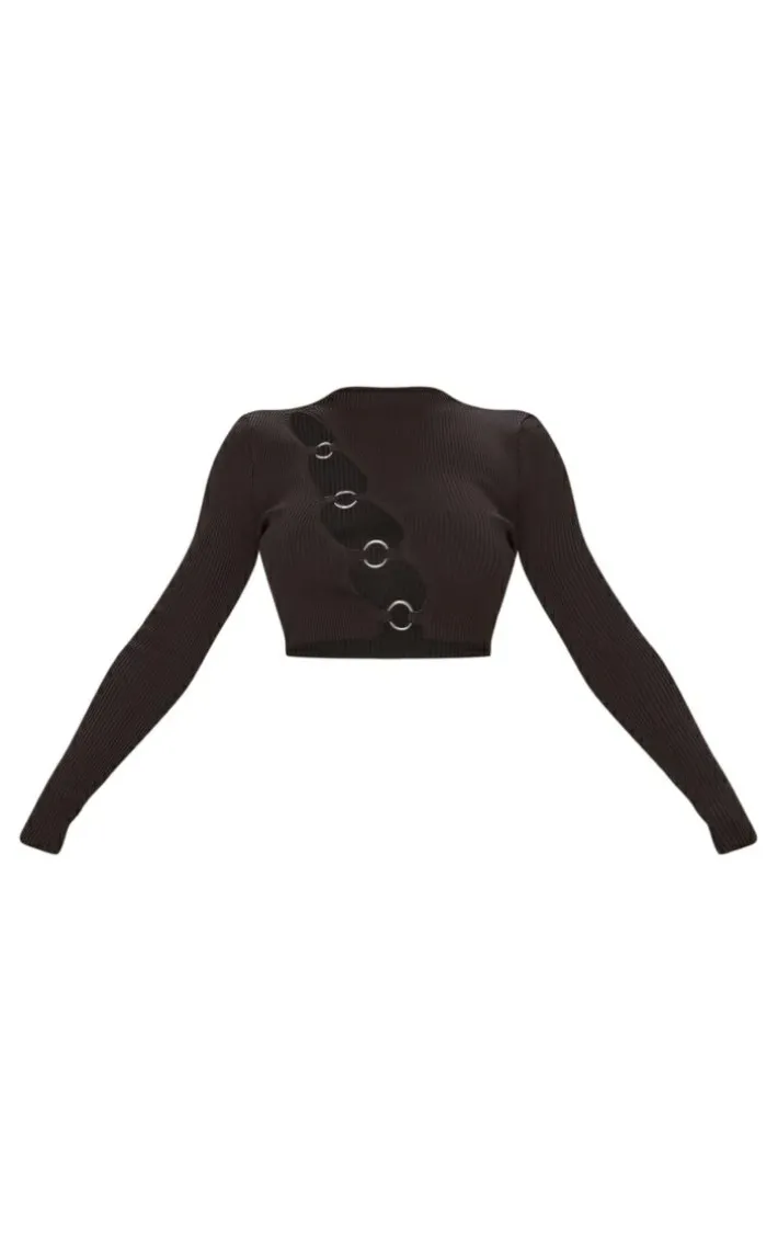 Add some attitude to your weekend look with this top. Featuring a black knit material with a cut out design ring detail and long sleeves, we’re obsessed. Style with a mini skirt and knee length boots for a look that is sure to steal the stares.