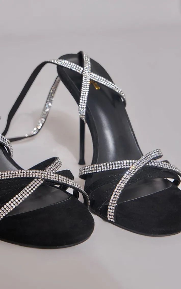 When your weekend look is in need of a statement touch of luxe, look no further than these black round toe diamante lace up high heeled sandals. Brought to you in a black hue material with a round toe design, diamante lace up fastenings and high heels, how can you not fall in love? Simply add these black heels to your outfit for a glam finish.