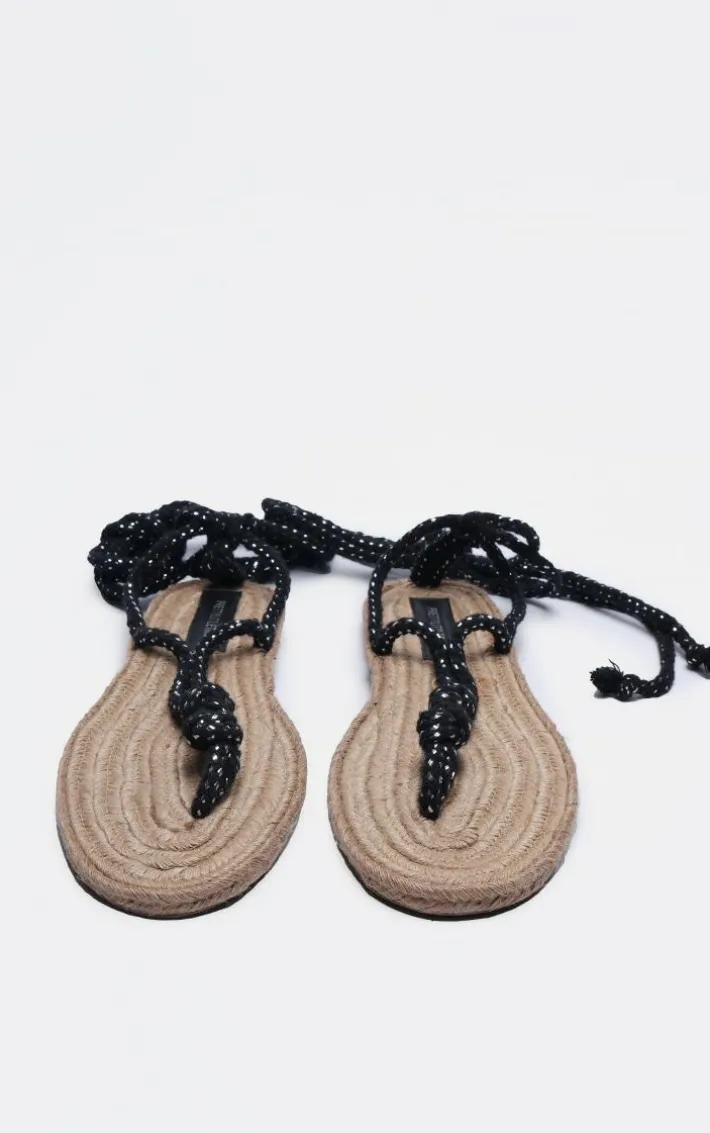 Hit refresh on your footwear collection with these black rubber round toe rope lace up thong toe flat sandals. Brought to you in a black rubber material with a round toe design and rope lace up fastening, these thong toe flat sandals are at the top of our wish list. Style with your fave outfit of the day for a chic finish like no other. It’s a yes from us.