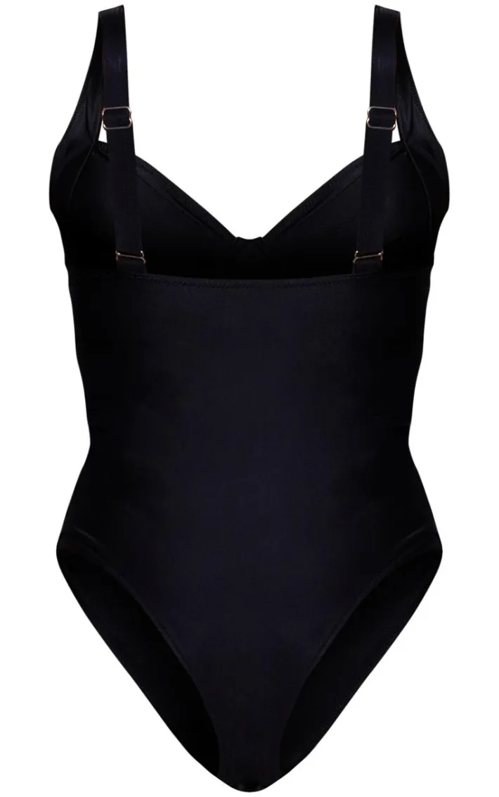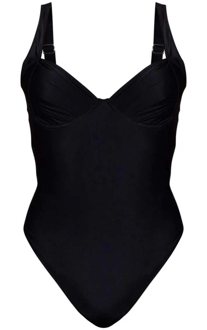 Say hello to your new vacay staple with this black ruched cup underwired swimsuit. Brought to you in a back material with ruched detailing and underwired cups, how could you say no? Style effortlessly with your gold accessories and sandals for a look that will turn heads for all the right reasons.