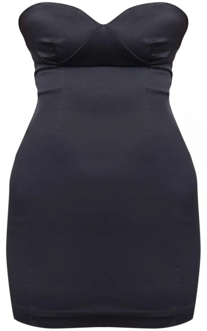 Get ready to look all kinds of glam in this black satin bandeau cup detail mini dress. Brought to you in a black hue satin material with a bandeau neckline, cup detailing and a flattering mini fit, how can you not be in love? Style this mini dress with your highest heel and some luxe accessories for a look they won’t be able to take their eyes off.