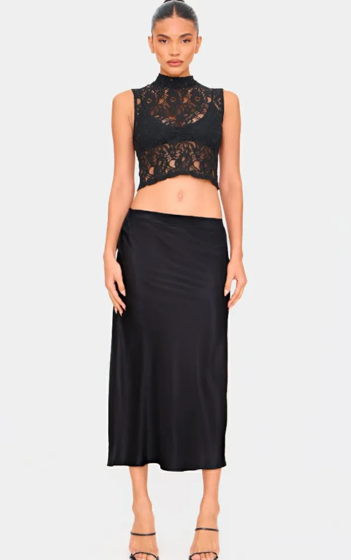 A chic midi skirt is a wardrobe staple and we are loving this style. Featuring a black satin material with a bias cut design and a midi length, style this with a white top, chunky kicks and your fave sunnies for a family BBQ worthy outfit.