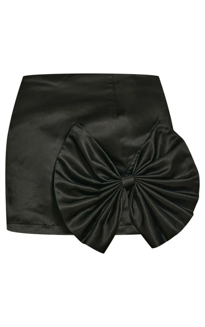 Bring all the luxe satin feels to your weekend look with this black satin bow trim mini skirt. Brought to you in a black hue satin material with a bow trim design for that extra touch of glam, you really can’t go wrong. Style this mini skirt with a corset top, clear strap heels and a mini bag for a chic look that is sure to steal all the stares.