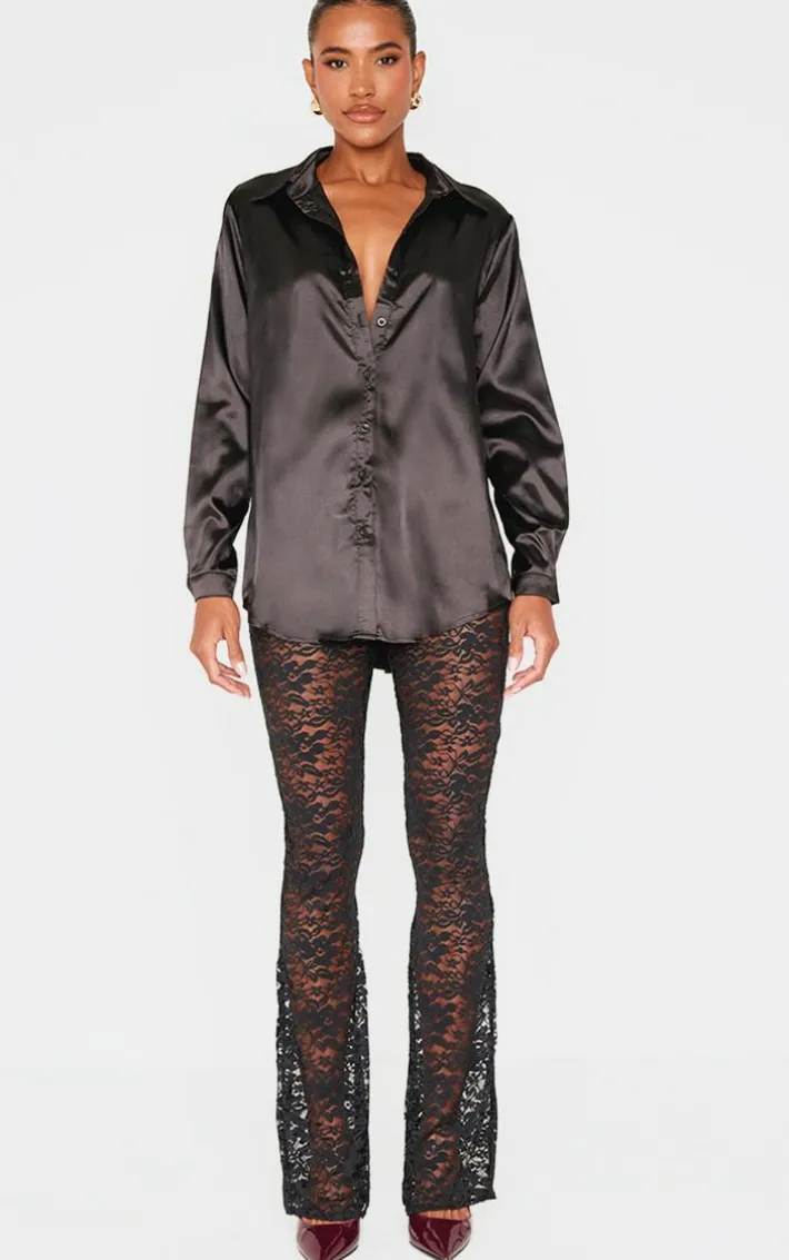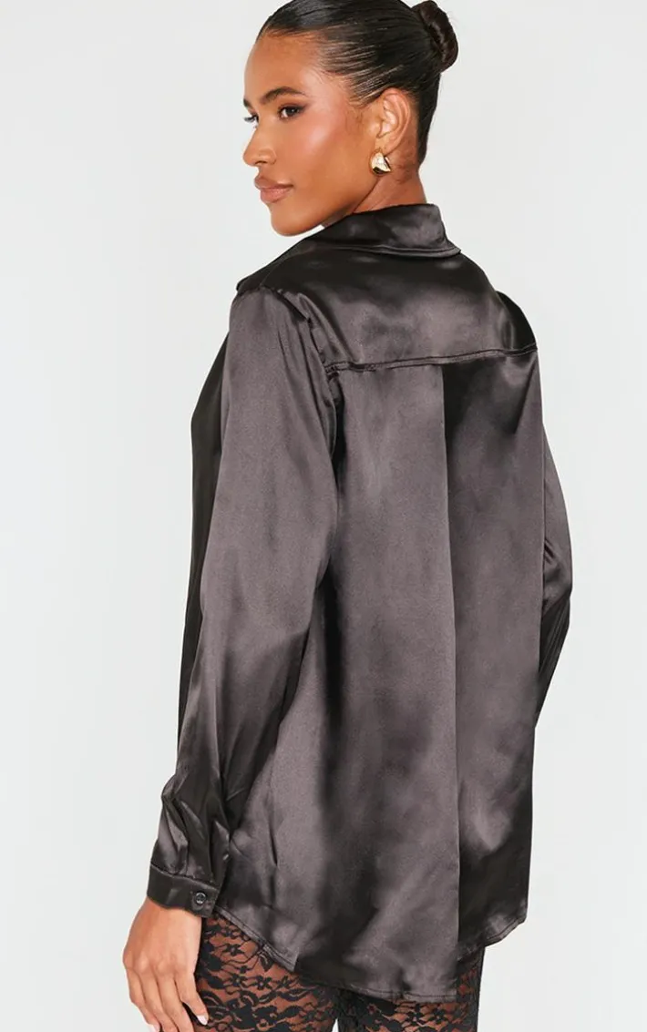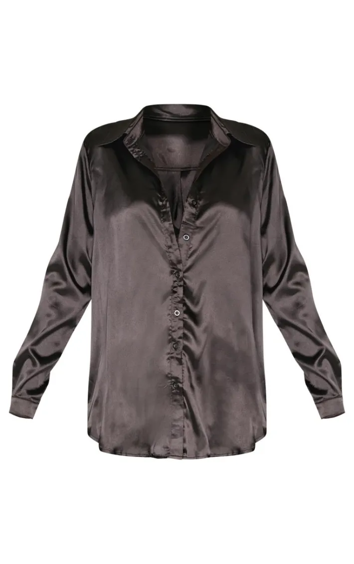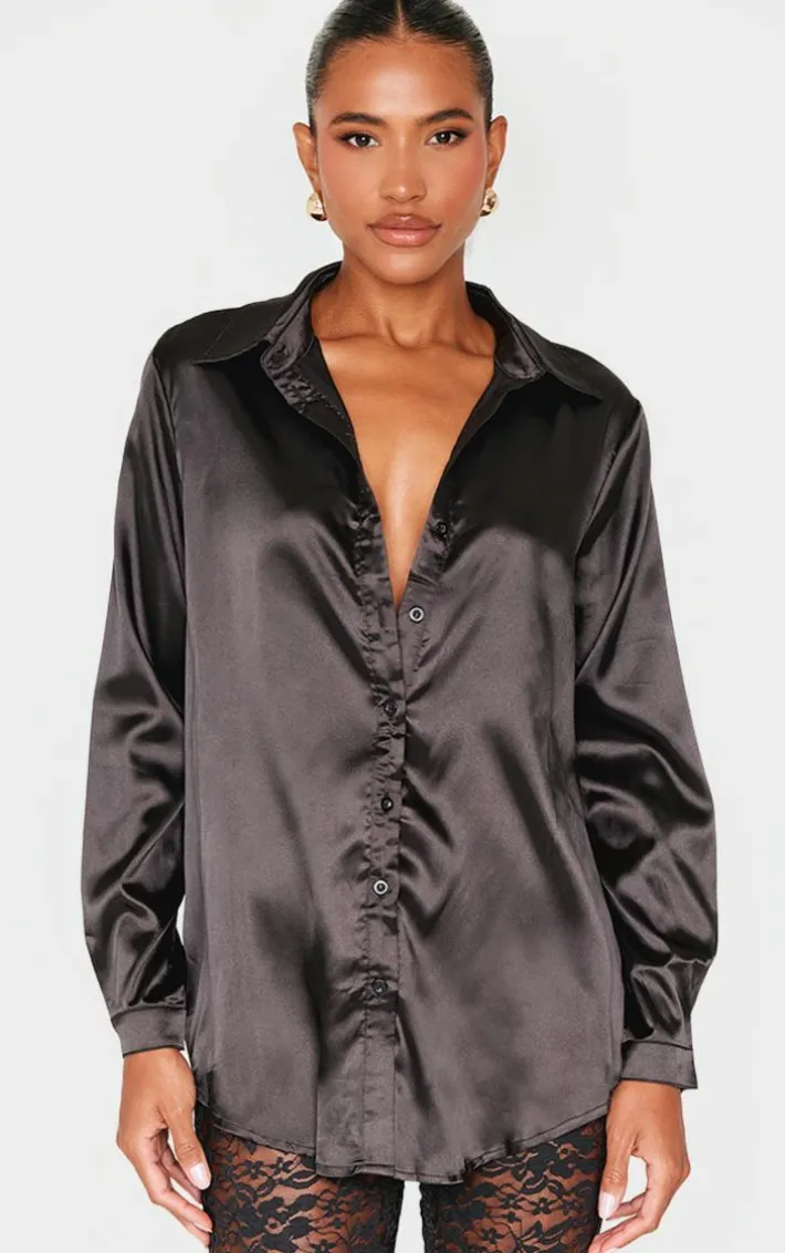 This button up shirt will be your newest weekend essential. Featuring a black satin material that’s soft on the skin, long sleeves with a collar and button front fastening, what’s not to love? This classic satin shirt is a staple piece you can mix and match with all your outfits and we are obsessed. Team this with a sequin mini skirt and a pair of strappy heels for a look that everyone will be obsessing over.
