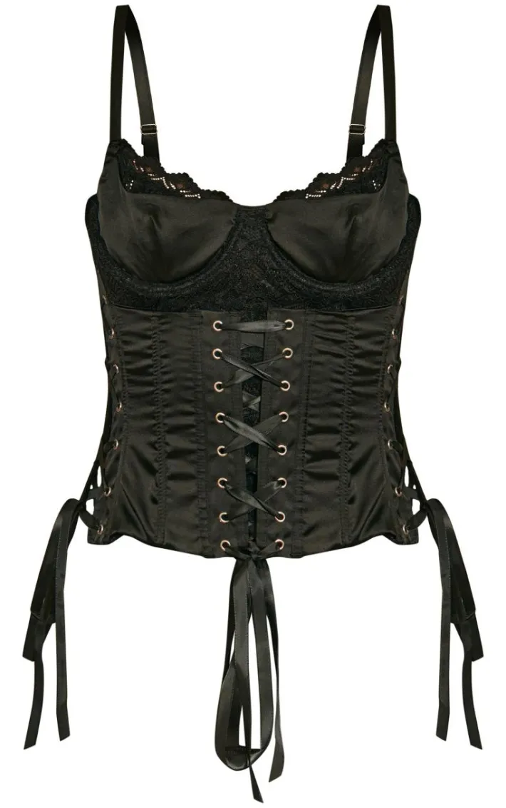 This unreal black satin insert lace up front corset top is here to banish any of your what to wear dilemmas. Made from a black satin material with an insert design and a lace up front, we can’tget enough. From start to finish this unreal corset top will have you looking totally on-trend. For a next-level look simply style with a mini skirt, heels and your fave accessories. It’s a yes from us.