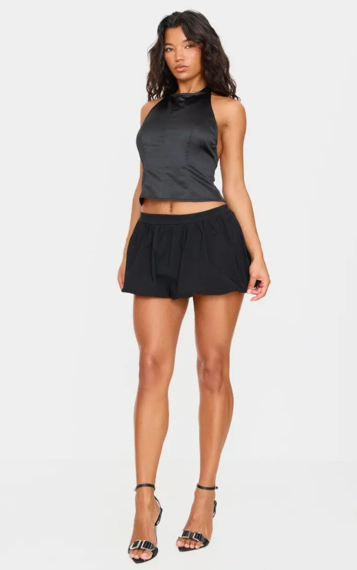 The new you starts here, opt for this black satin low back halterneck long top. Made from a black hue satin material with a low back design and halterneck detail, this long top is a must have. Style with a black mini skirt, strappy heels and gold accessories for a look perfect for those weekend plans.