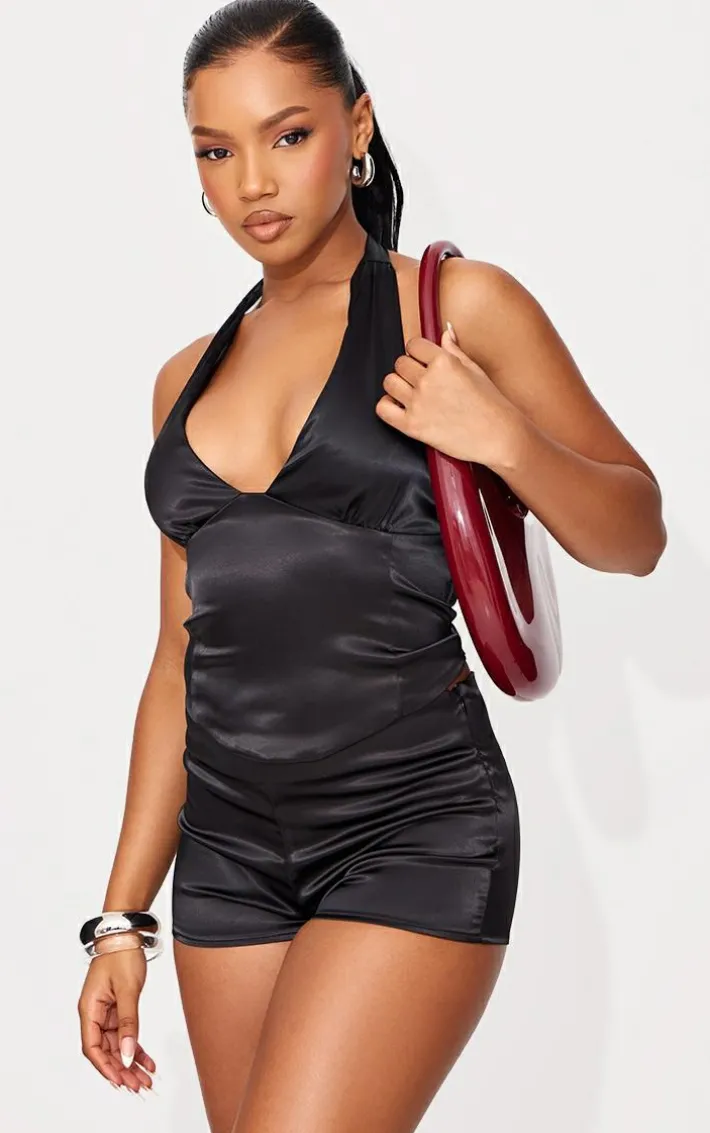 These black satin mid rise mini shorts are sure to give a figure-flattering finish. Brought to you in a classic black hue, with a statement satin material and mid rise fit, these mini shorts were made to be seen. Style with the matching top and pair of heels for a look that won’t go unnoticed.