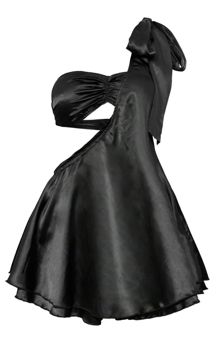 Stand out from the rest with this black satin one shoulder cut out floaty skort romper. Brought to you in a black satin material with a one shoulder design and a cut out detail, you are sure to have hearts racing for all the right reasons. Team this floaty skort romper with a statement bag and your fave heels for a look that will make you center of attention.