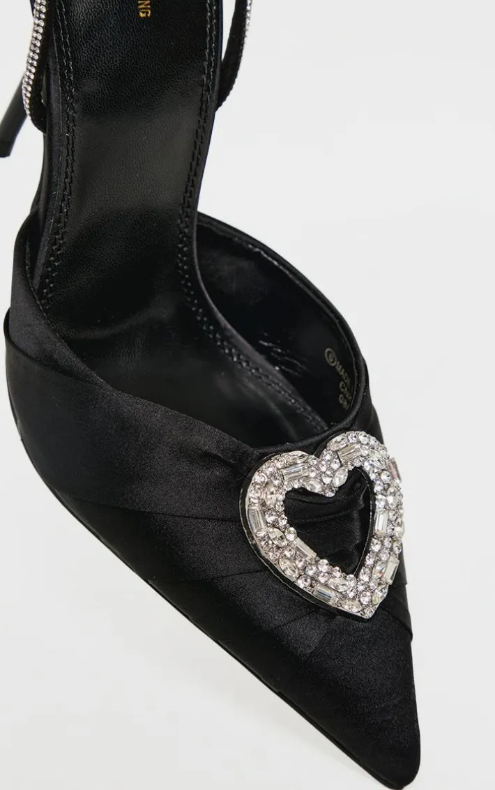 These black satin point toe diamante heart court heels are the perfect addition to any outfit. Brought to you in a black satin material with a point toe design and a diamante heart detail add a touch of luxe like no other. Pair these heels with your fave look to turn heads.