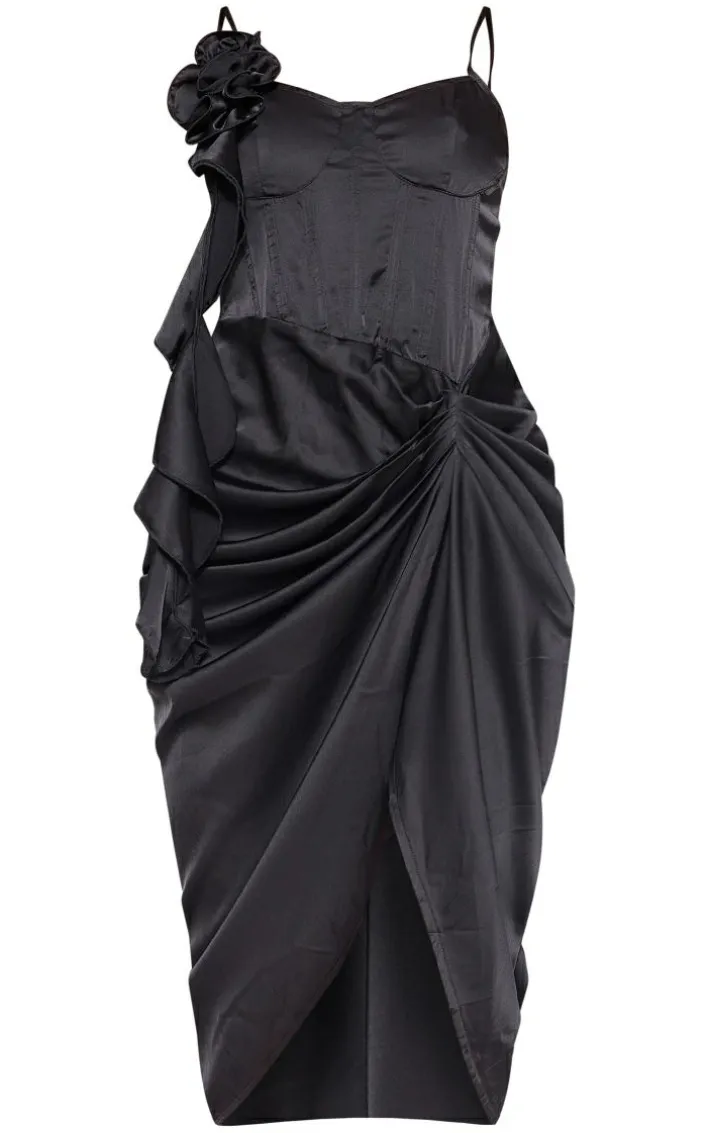 When the weekend calls for a little drama this black satin rose detail corset mini dress will have you at the center of attention. It is made using a black satin material with rose detial, a corset style and a mini length, what more could you want ? Style this mini dress with clear slip-on heels and statement accessories to elevate the look further..