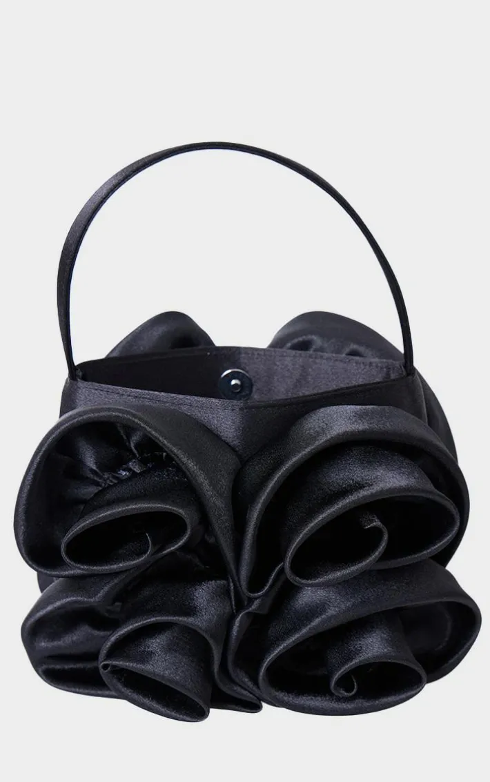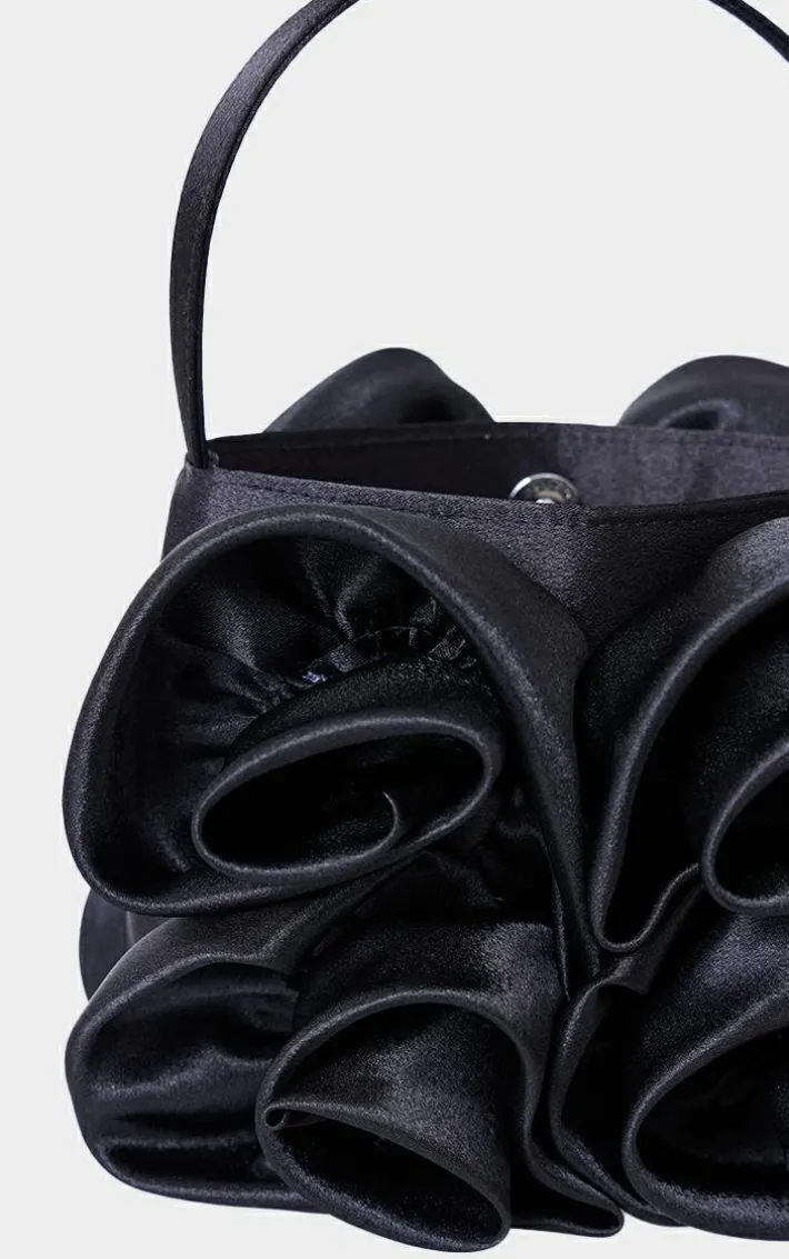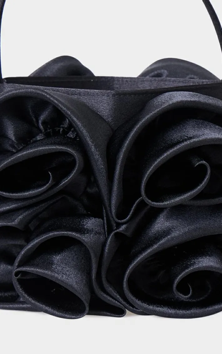 Instantly elevate your weekend look with this black satin rose detail handbag. Brought to you in a black satin material with rose detailing for that extra touch of luxe, how can you say no? Style this satin handbag with your fave outfit for the perfect finishing touch to any look.
