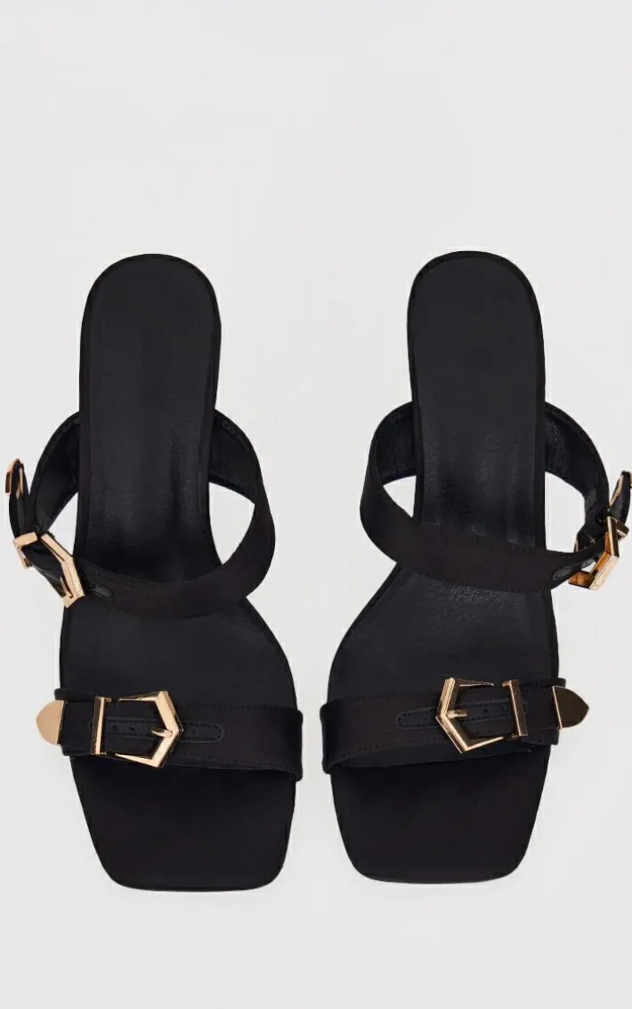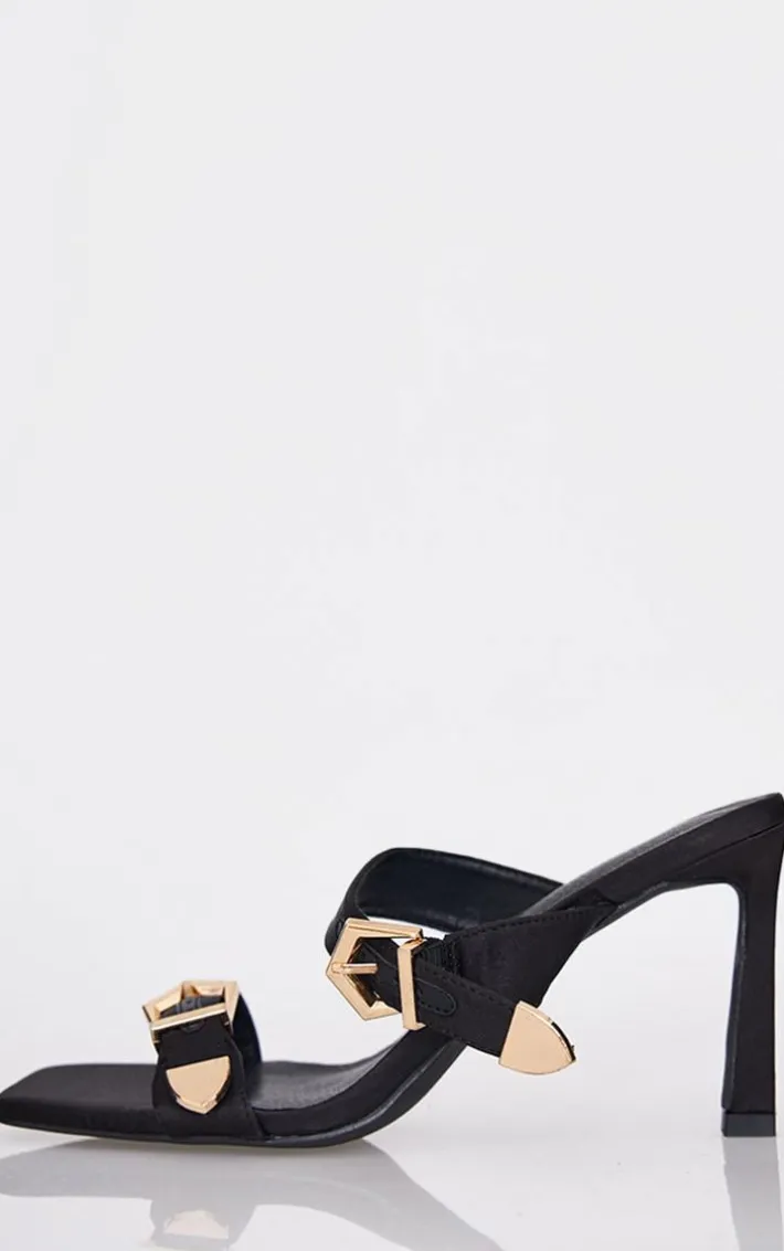 Introducing these black satin wide fit square toe buckle strap high stiletto heeled mules. Brought to you in a black hue satin material with a square toe design, buckle strap detail and high stiletto heel, these wide fit mules are a must have. How can you resist? Team with an all black look for a chic finish we’re loving.