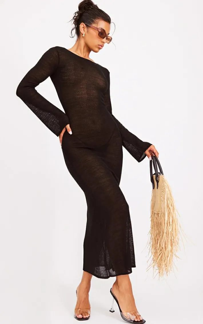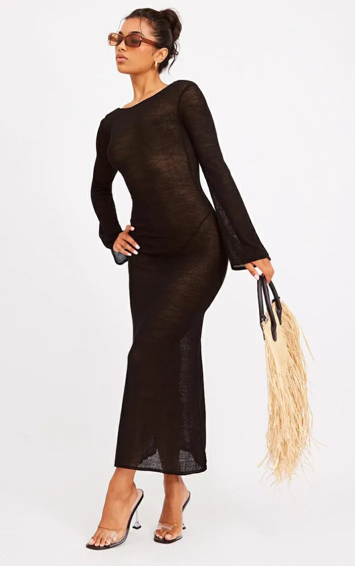 Turn heads for all the right reasons with this black scoop back filagree knit maxi dress and be sure to gain plenty of compliments. Made from a black filagree knit material with a scoop back detail and a figure-hugging fit, what’s not to love? With endless styling possibilities, this maxi dress is the ultimate styling staple your wardrobe needs. Pair with a statement bag, clear heels, and sunnies for a look that won’t go unnoticed.