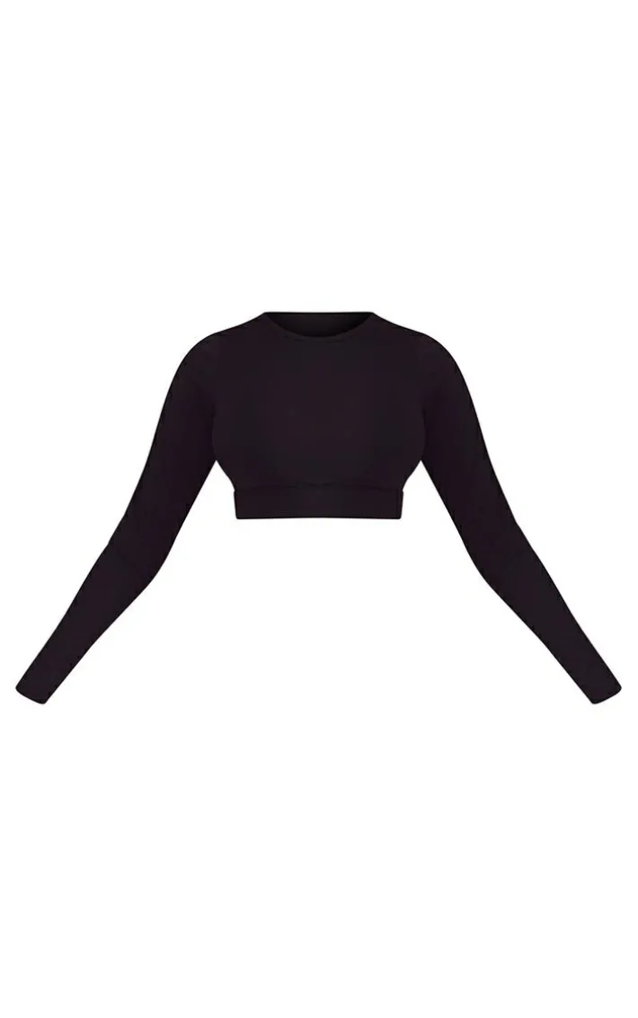 This long sleeve sports top is the perfect addition for your workout wardrobe. Featuring a black sculpt material with long sleeves and a cropped length, team it with the matching leggings and black runners to finish the sweat-proof combo.