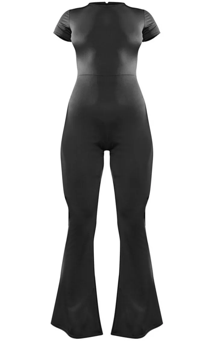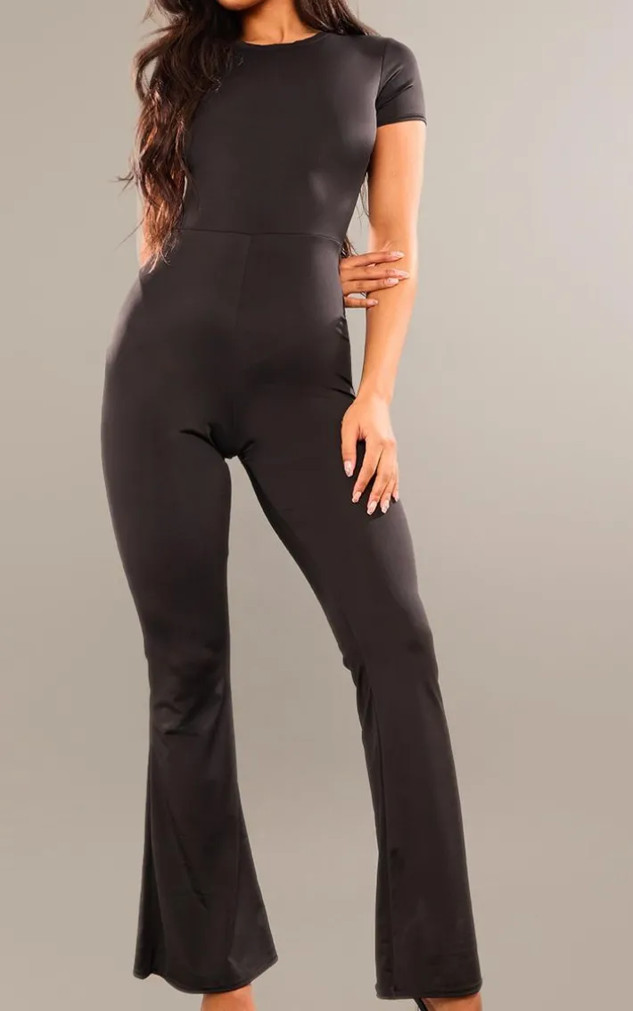 Make weekend styling look effortlessly chic in this black sculpt short sleeve jumpsuit. Brought to you in a black hue sculpt material with short sleeves andfigure-hugging fit, how can you go wrong? Perfect for dressing up or down, this black jumpsuit is sure to be a staple in your new season wardrobe. Simply add heels and some glam accessories for a look worthy of your weekend plans.