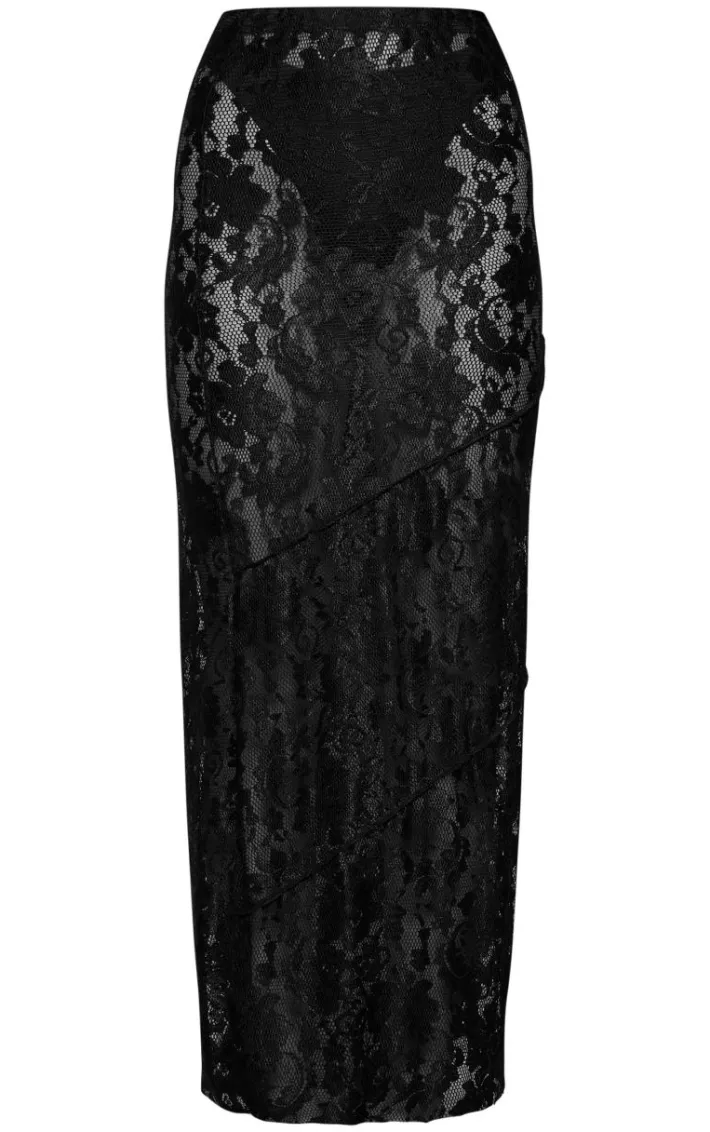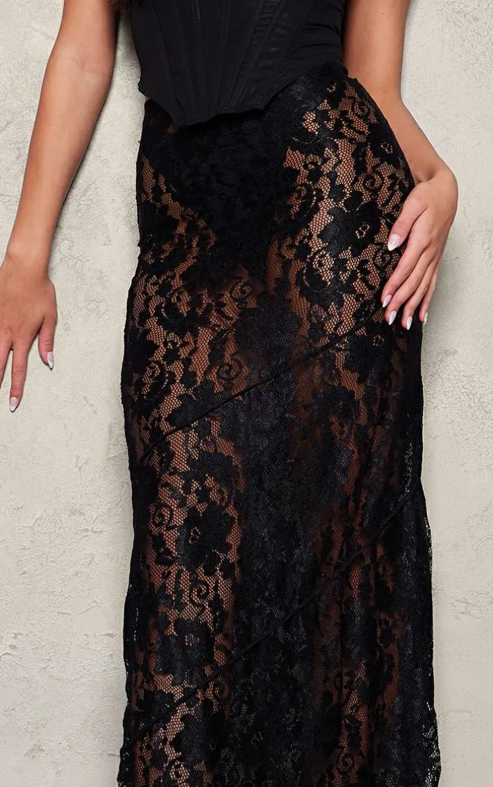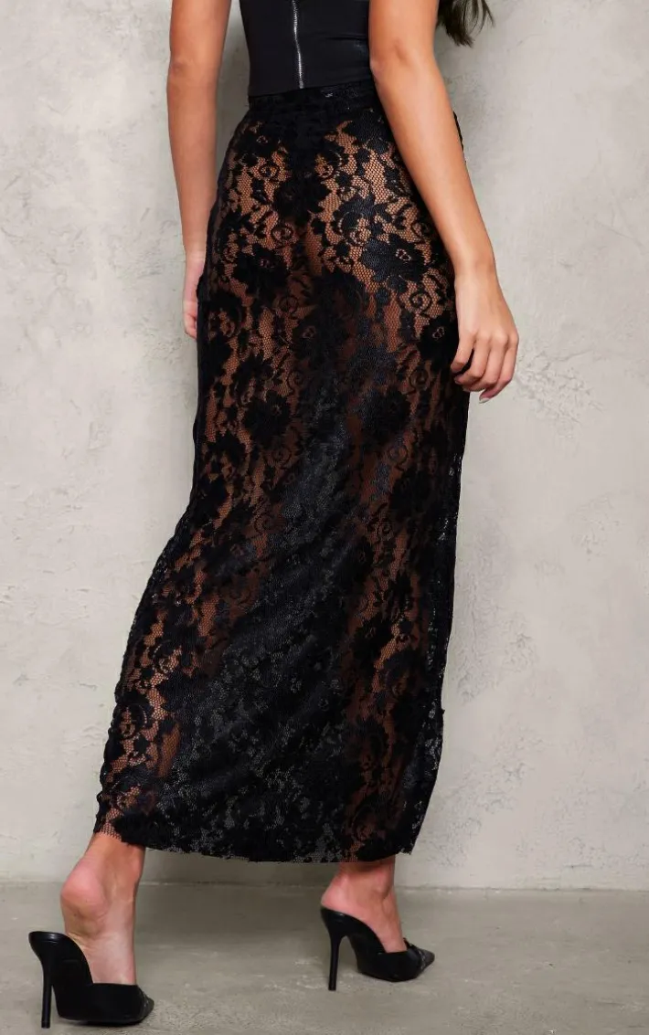 Bring all the luxe lace feels to your weekend look with this black seam detail lace maxi skirt. Made from a black hue lace material with seam detailing and a flattering maxi fit, how can you resist? Style this maxi skirt with a black corset top, heels and some glam accessories for a seriously chic look they won’t be able to take their eyes off.