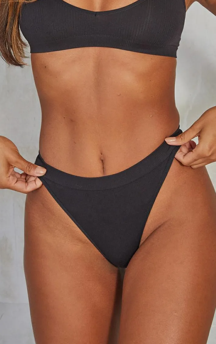 Upgrade your underwear essentials with this 3 pack. Featuring a black ribbed material with a high leg fit and a seamless design, what’s not to love? Team with a matching bralet to complete the combo.