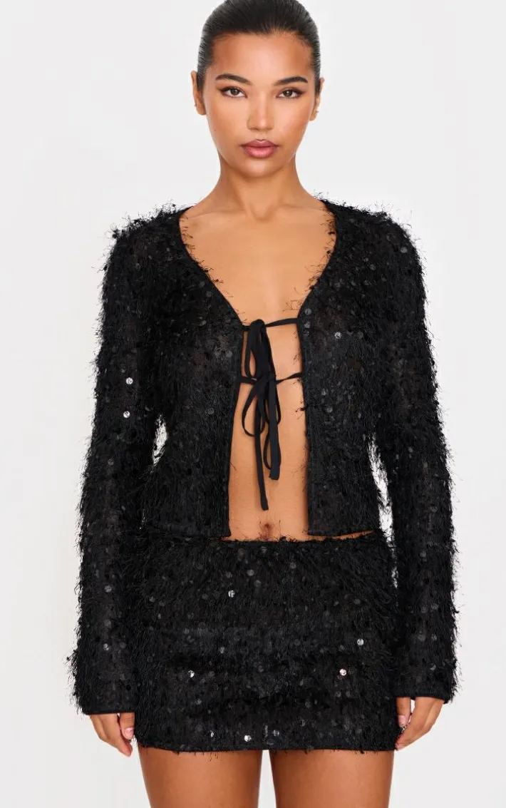 Deciding what to wear this party season just got easier with this black sequin eyelash micro mini skirt. Brought to you in a black hue eyelash material with a sequin design and micro length, this mini skirt is all the new you need. Style with the matching top, slip on heels and gold accessories for a combo guaranteed to get you noticed.