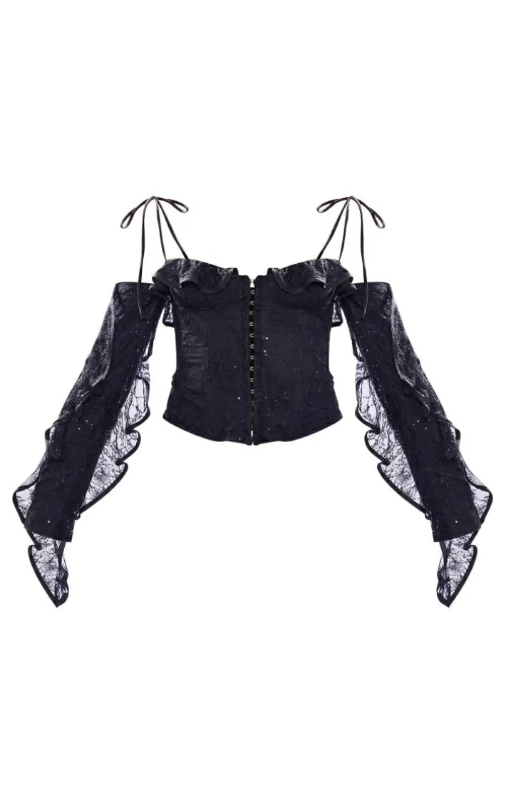 Take any look to new heights with this black sequin lace boned bardot corset. Brought to you in a black sequin material with a lace detail, you will be feeling fiercely feminine no matter what. Its boned bardot design is all you need to stand out from the rest. Team with a mini skirt and your fave accessories to finish off the look.