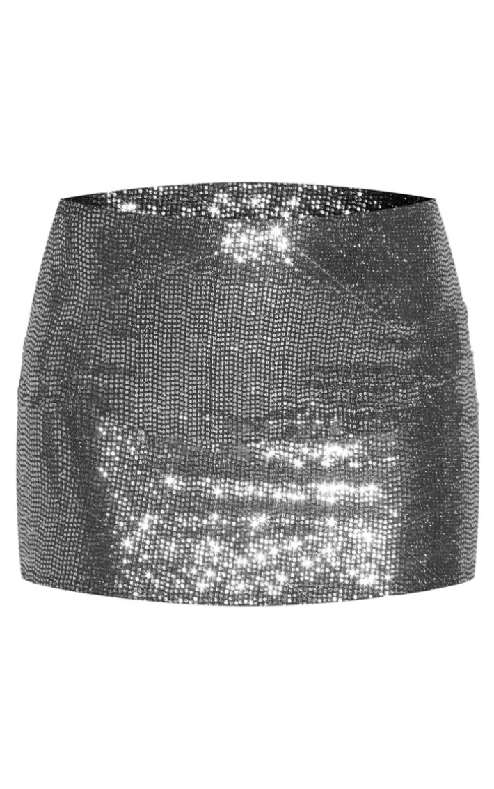 Bring all the glam vibes to your weekend wardrobe with this black sequin low rise micro mini skirt, get ready to have all eyes on you. Made using a black sequin material with a low rise design and a micro mini length, this skirt will have you showing off your confident side. Team this mini skirt with the matching top and elevate the look further with clear slip-on heels and a statement bag.