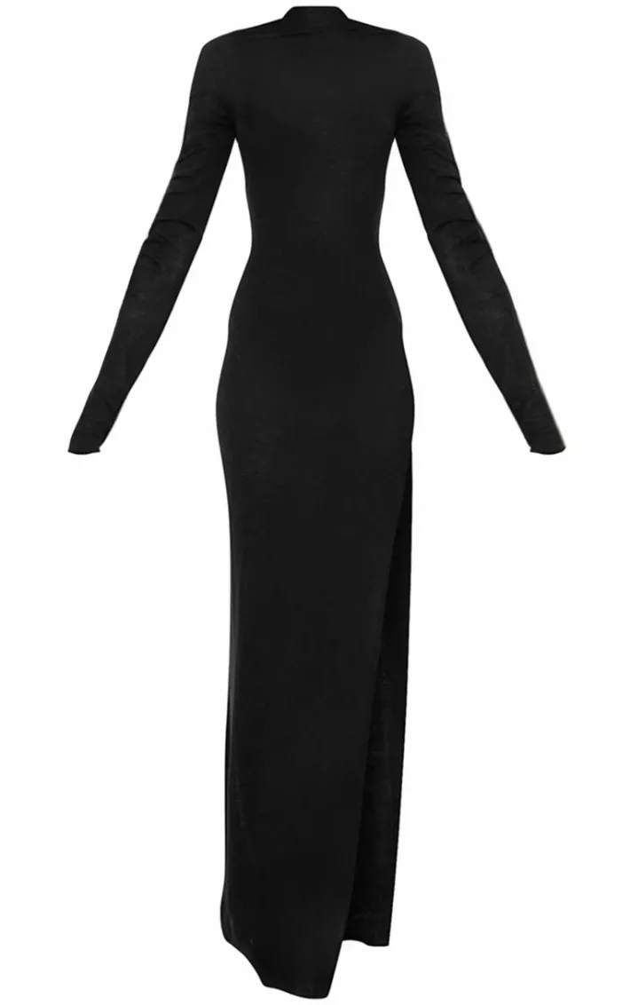 Look your most glam in this black sheer knit high neck maxi dress. Brought to you in a black sheer knit material with a high neck detail, this maxi dress is turning heads for all the right reasons. Style with your fave heels and accessories for a chic finish we can’t take our eyes off.