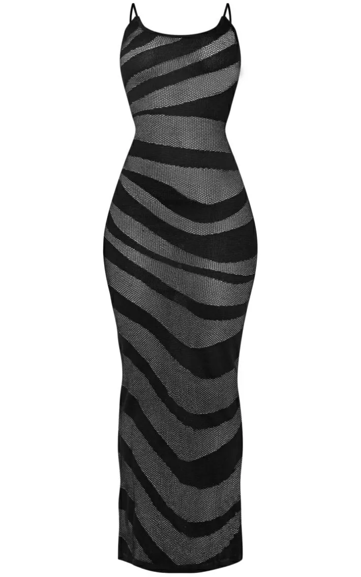 Have all eyes on you in this midi dress. Featuring a black sheer knit material with a stripe design and a midi length, we’re obsessed. Just add heels and statement accessories for the perfect weekend ‘fit.