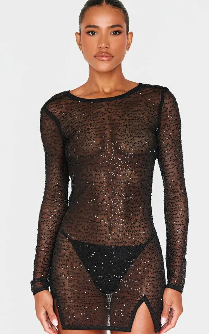 Make styling easy this season with this black sheer sequin cowl back shift dress. Brought to you in a black hue sheer material with a sequin detail and cowl back design, this shift dress is all the new you need. Team with high heels and your go to accessories for an elevated finish. It’s a yes from us.