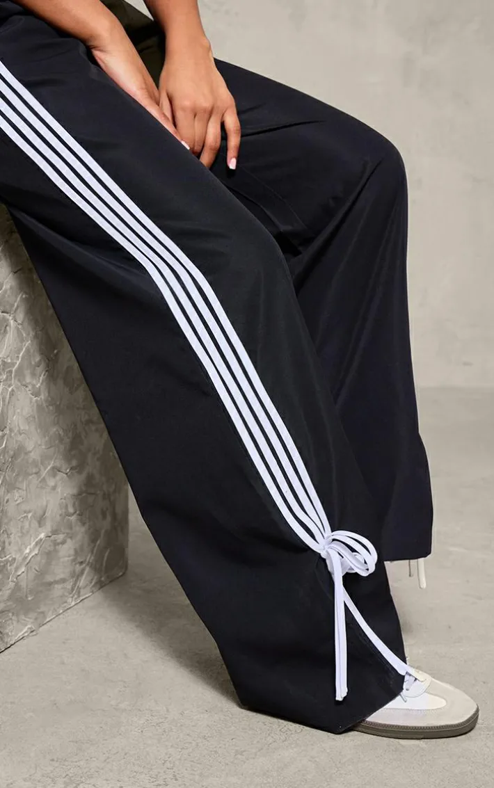 Take on those chilled days in style with these black shell bow detail track Pants. Brought to you in a black hue shell material with bow detailing and a seriously comfy fit, what more could you want? Team these track Pants with a crop top, sneakers and simple accessories for an effortless everyday look we just can’t get enough of.