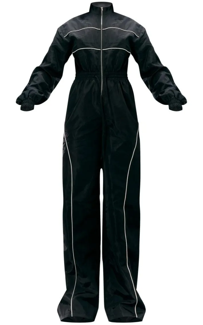 Add a little edge to your new season wardrobe with this black shell panelling zip detail jumpsuit, you’re sure to have heads turning for all the right reasons. Made using a black shell material with a panelled design and a zip detail, everyone will be asking about this jumpsuit. Team this shell jumpsuit with chunky boots and your fave accessories for a look that will bring all the attitude.