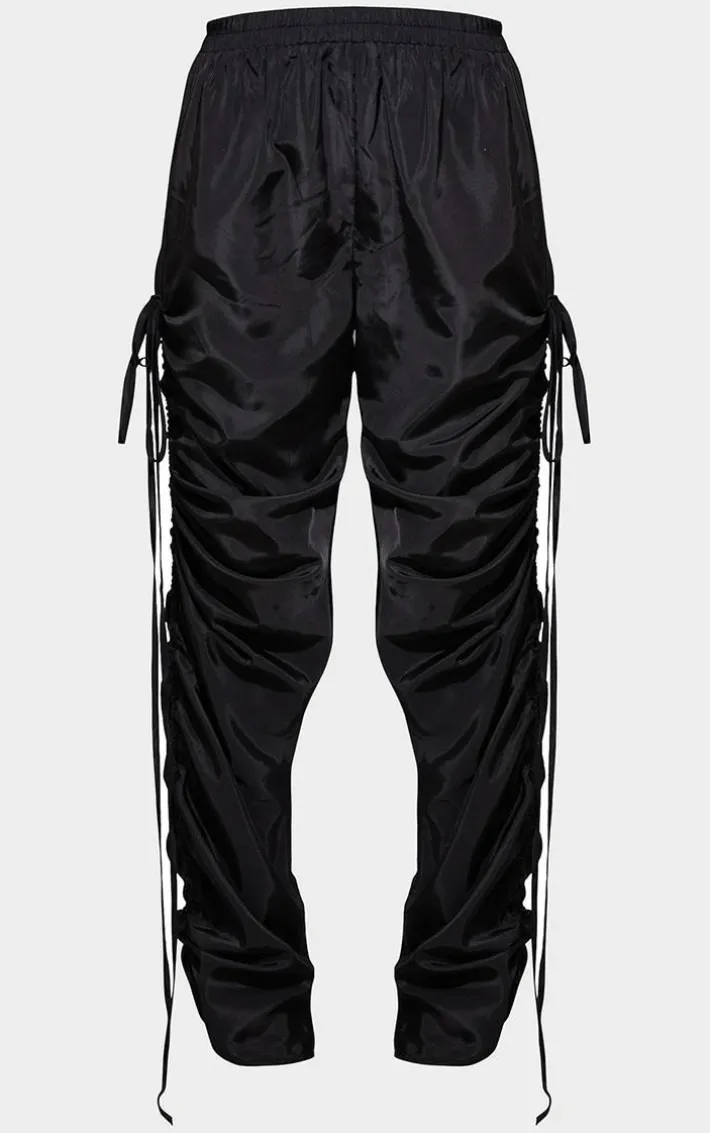 Switch up your weekend look with these next-level bottoms. Featuring a black shell material with ruched leg detailing and an elasticated waist, we’re obsessed. Style with heels and a bandeau top and add a bomber jacket for extra style points.