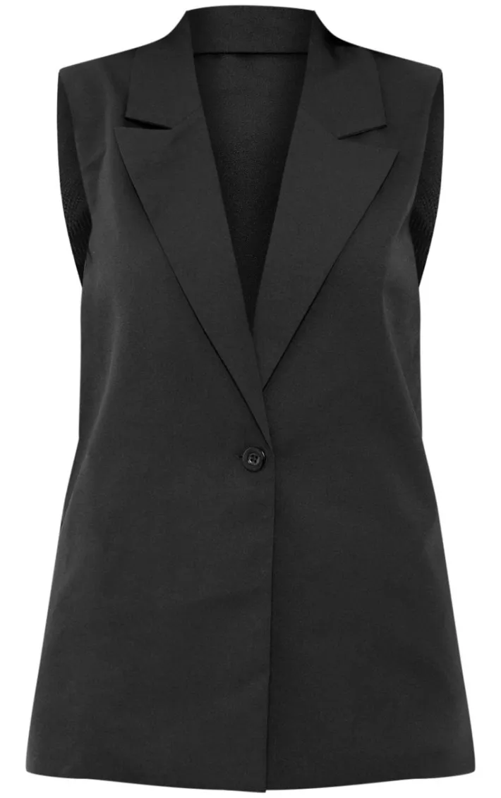 Bring all the chic vibes to your wardrobe with this black sleeveless longline vest. Brought to you in a black material with a sleevless design and longline detail, this vest is a must-have. Style with black shorts, fresh kicks and simple gold accessories to have all eyes on you.