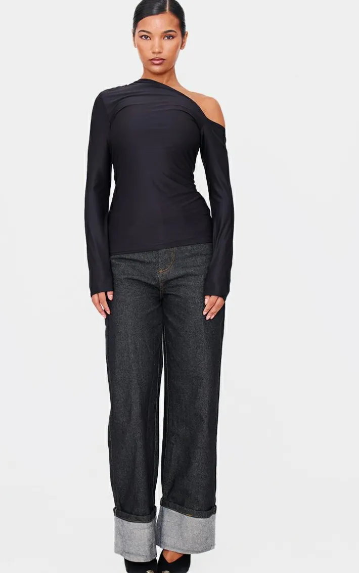 Swap out your usual tee for this black slinky asymmetric longline top. Brought to you in a black slinky material with an asymmetric design and a longline fit, what more could you want? This top is perfect for those day to night looks and beyond. Team with a pair of wide leg pants and heels for an Insta worthy finish.