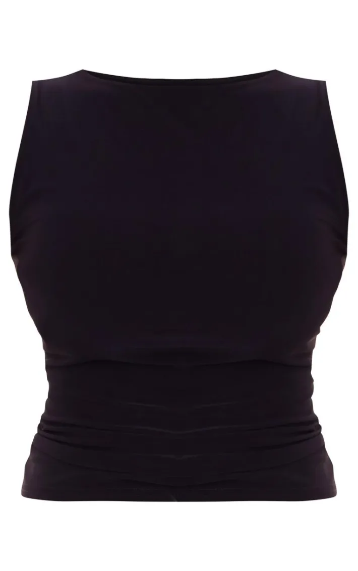 Add a bit of style to your basics game with this black slinky boatneck sleeveless top. Brought to you in a black slinky material with a boatneck design and sleeveless style, how can you resist? Style this top with a white mini skirt, heels and gold jewelry.